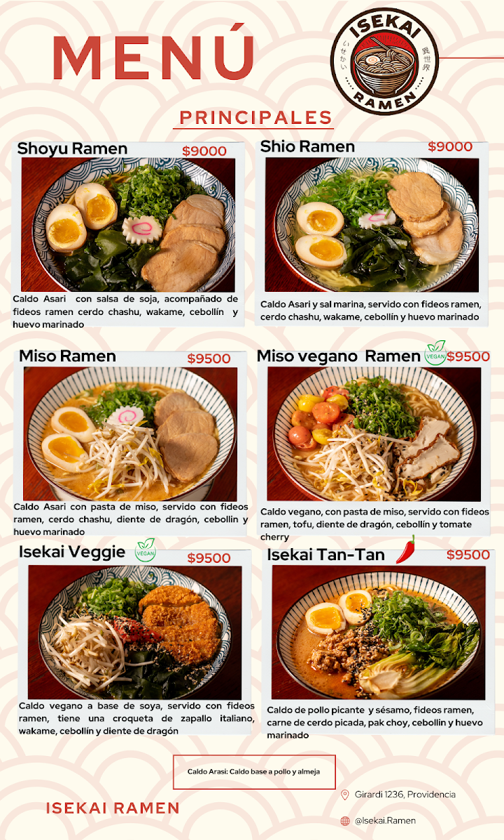 Welcome to the vibrant world of Isekai Ramen, a hidden gem nestled at Girardi 1236 in Providencia, Region Metropolitana, Chile. For those on the quest for authentic Japanese ramen, this cozy ramen bar is a treasure worth discovering. With a knack for offering truly delightful bowls, Isekai Ramen has quickly garnered attention from locals and visitors alike.